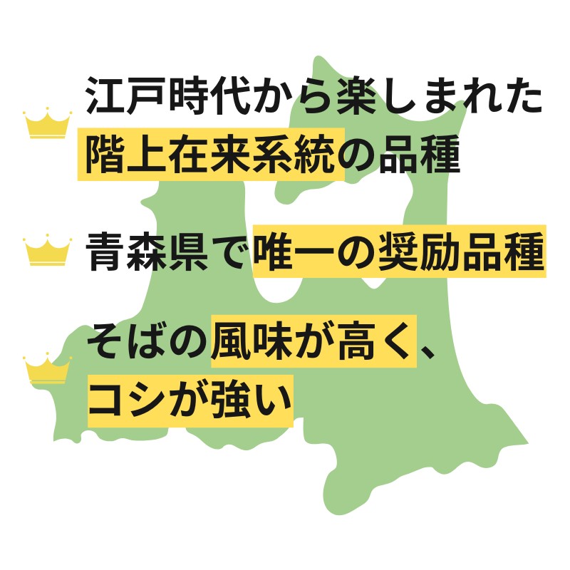 青森県で古くから栽培されている、階上在来系統から選抜された品種「階上早生(はしかみわせ)」のそば粉です。